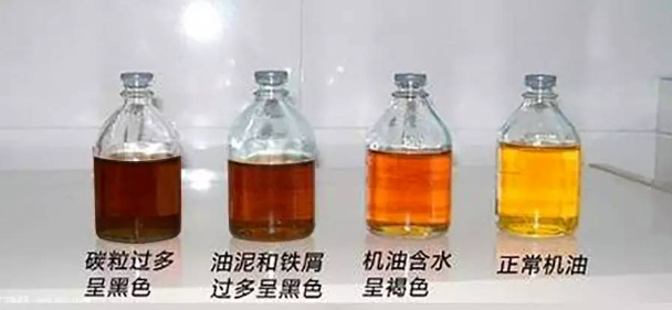 1.顏色變化。氧化可使一些潤滑油顏色變深;水污染可造成潤滑油混濁、變白或明顯乳化。